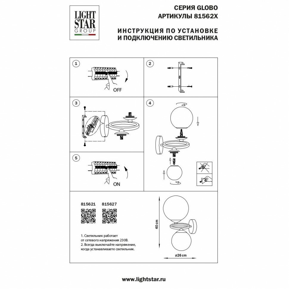 Lightstar Бра Globo 815627
