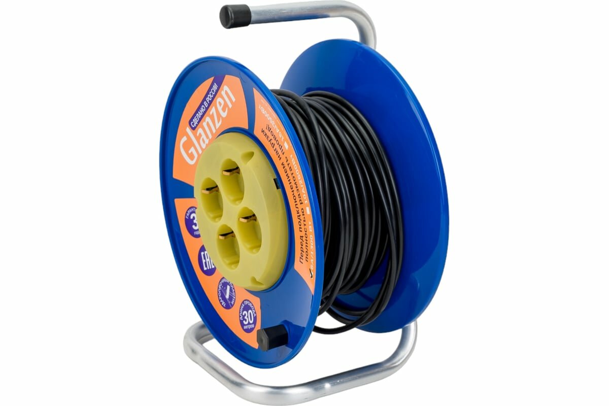 Купить Удлинитель на катушке GLANZEN EB-30-018 30м, 4 розетки, синий