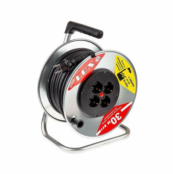 Силовой удлинитель на металлической катушке LUX К4-Е-30 30м 4 розетки с з/к 45130 4606400419464
