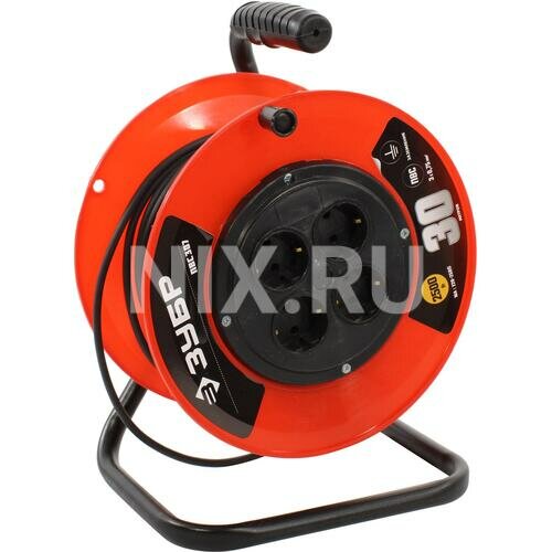 Удлинитель на катушке ПВС 307, 30 м, 2500 Вт, 4 гнезда, ПВС 3х0,75 кв мм, ЗУБР