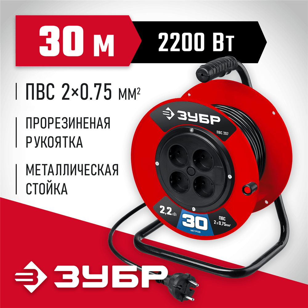 ЗУБР ПВС-207 ПВС 2х0.75 30м 2200Вт, Удлинитель на катушке (55083-30)