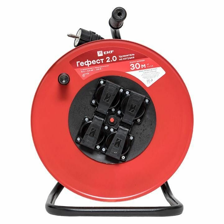 СохранитьСиловой удлинитель на катушке с заземлением и предохранителем, 4 розетки, 30 метров, Гефест 2.0 (16А-3,5кВт, КГ) интересное: