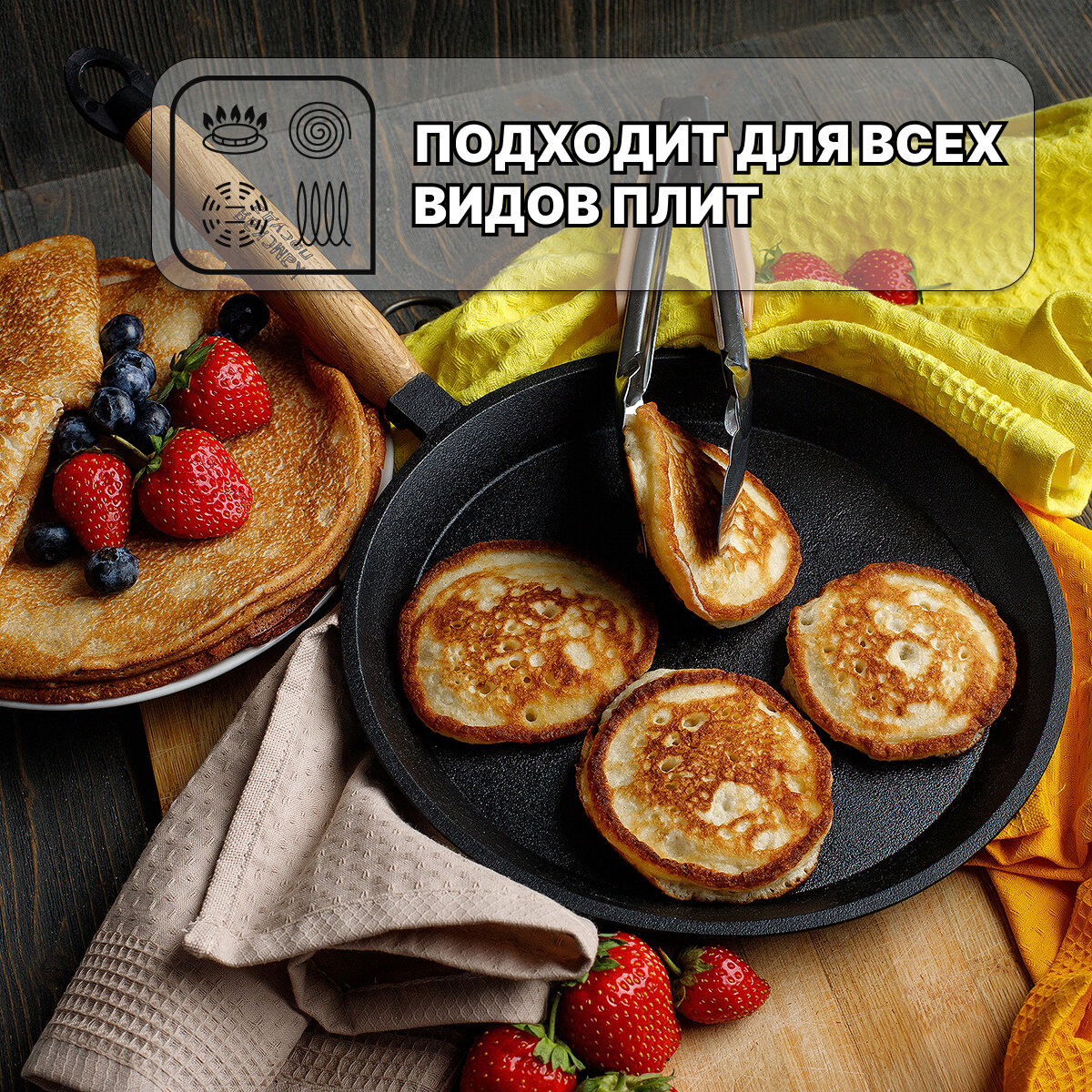 Сковорода блинная Камская Посуда бл220 чугунная 220х15 с деревянной ручкой