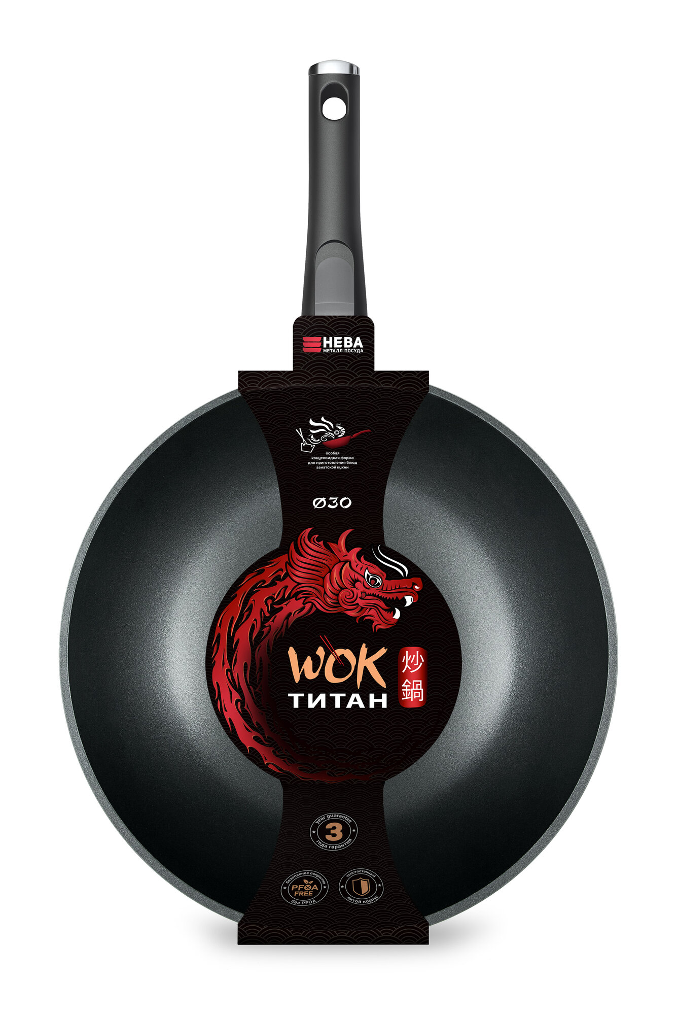 Сковорода-Вок Нева Металл 30см "Титан" литая, с/р 3130W .