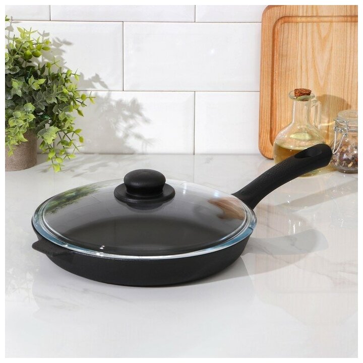 Сковорода Камская посуда б6042 чугунная 260х40 со стеклянной крышкой интересное:
