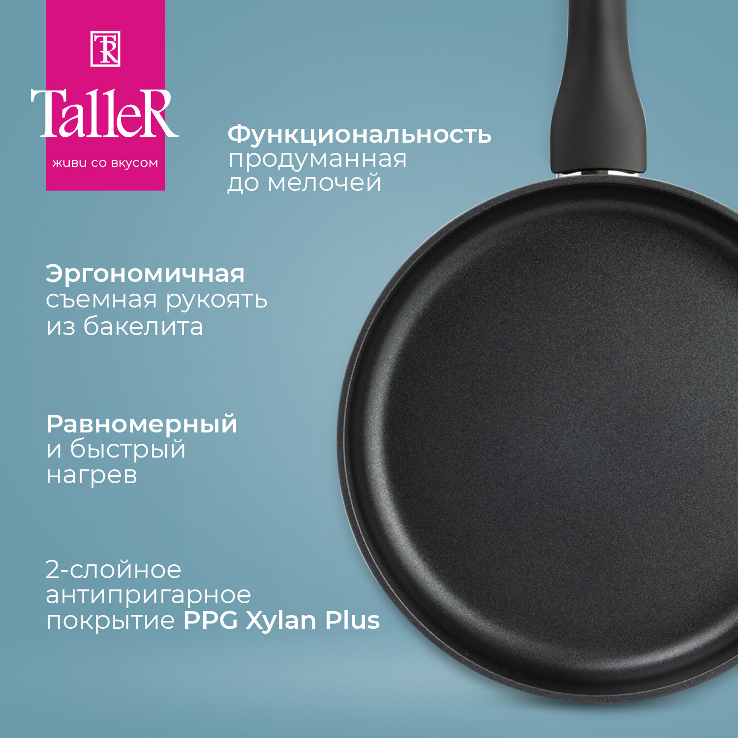 | Дополнительная информация | антипригарное покрытие: Whitford Xylan Plus; материал ручки: бакелит с покрытием soft-touch |