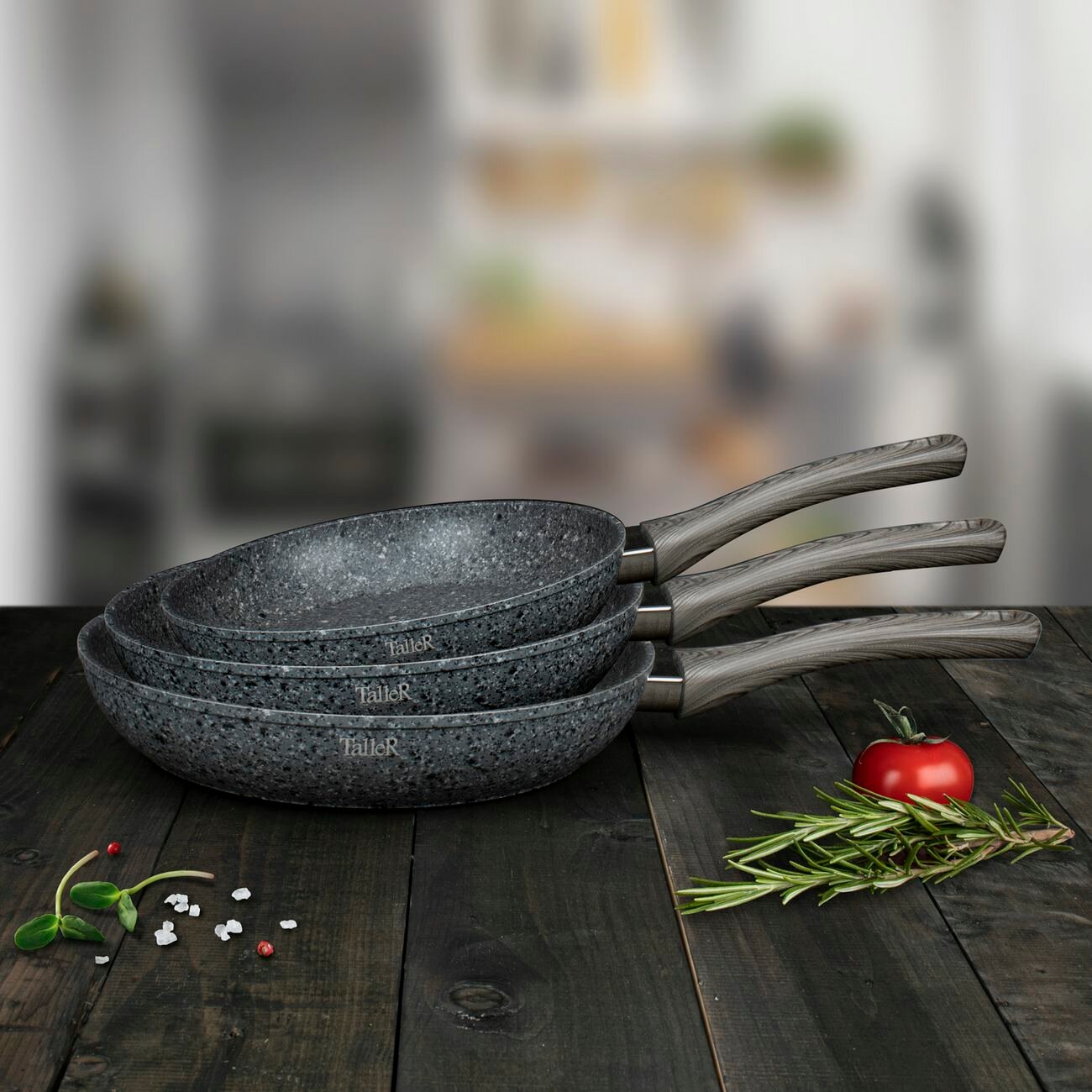 | Отзыв: | Предпочитаю эту фирму, уже третья сковорода от Taller. Подходит для индукционной плиты. Диаметр 26 см универсален, готовлю в ней завтрак на двоих, пасту, использую для жарки блинов |