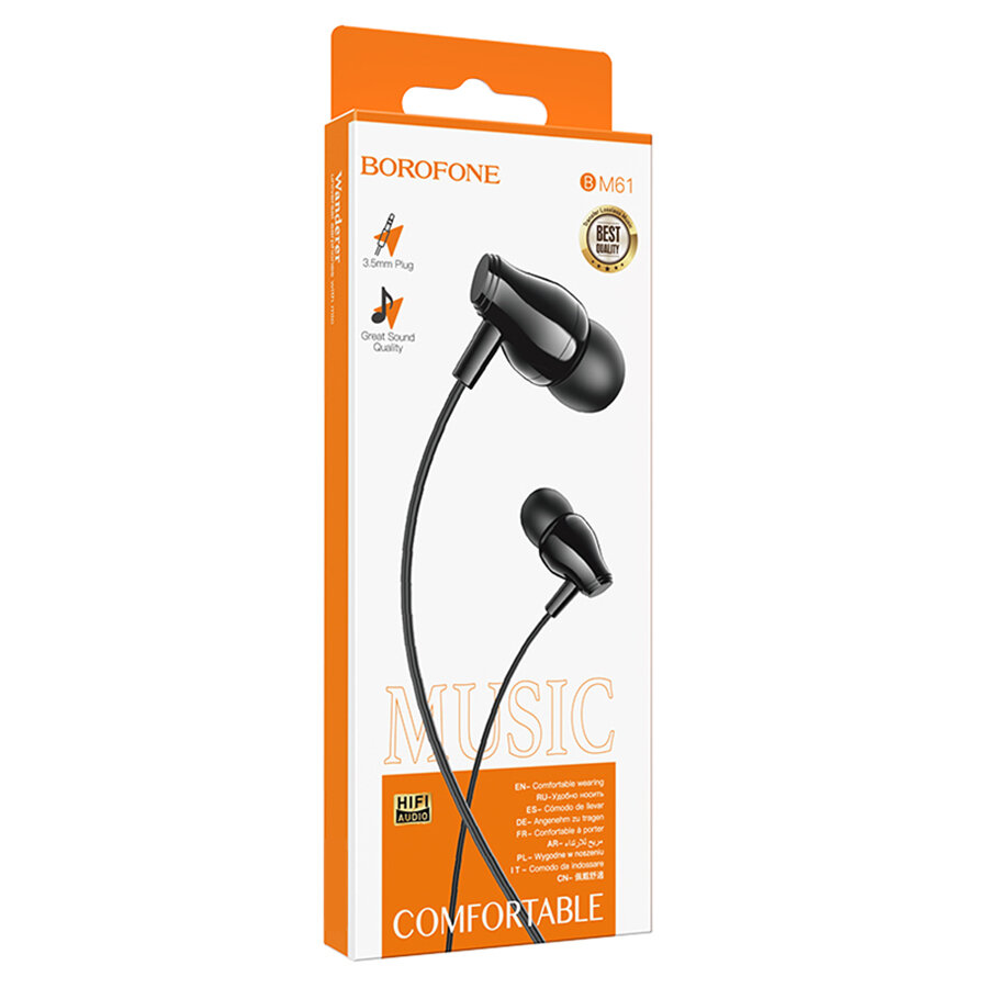 Наушники Borofone BM61 Wanderer, вакуумные, микрофон, Jack 3.5 мм, кабель 1.2 м, чёрные