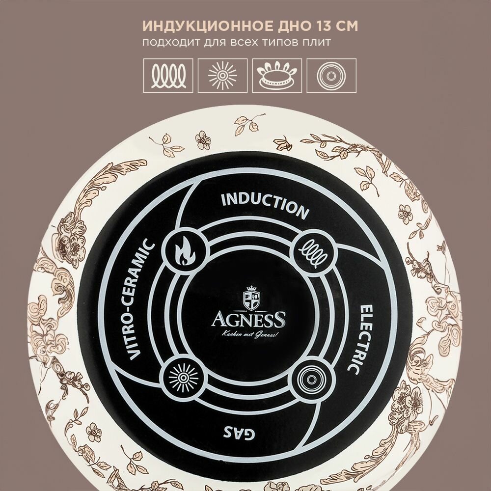 Купить Кастрюля эмалированная Agness 2,1 литра "Royal Garden" для всех видов плит, диаметр 16 см