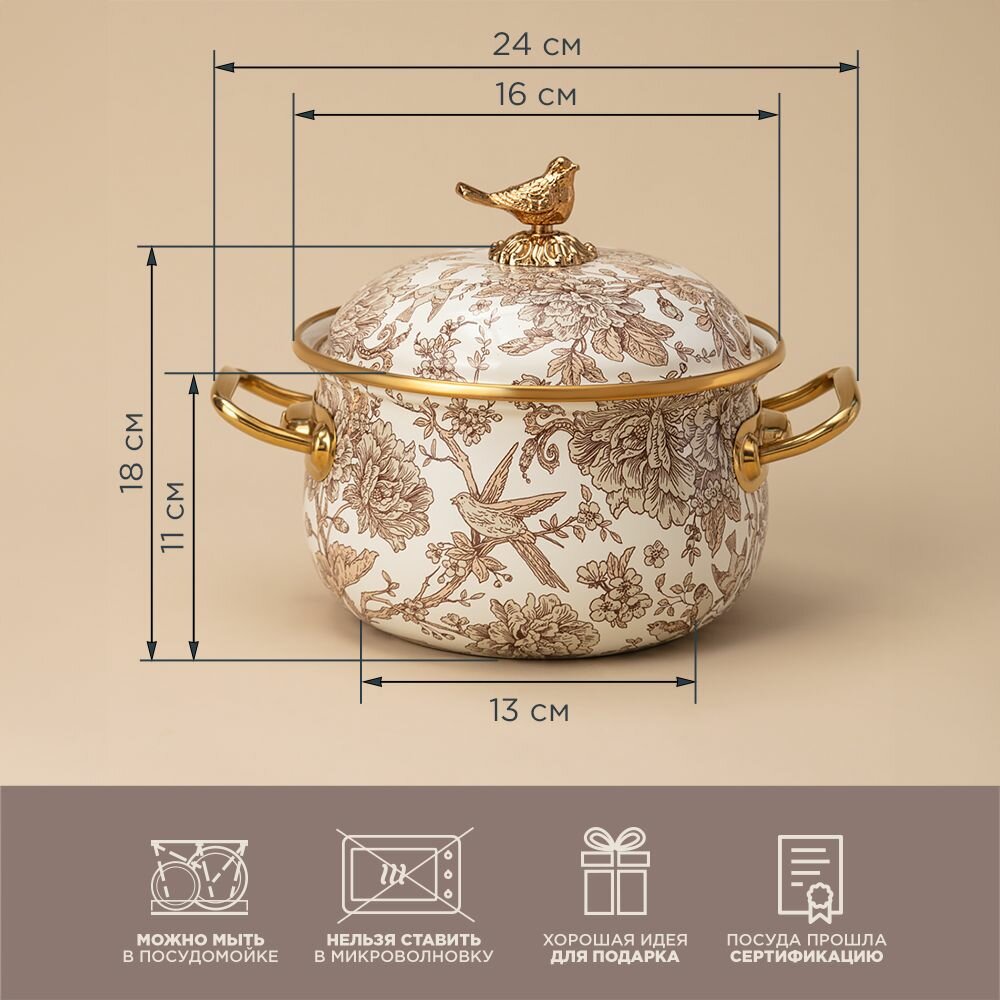 кастрюля эмалированная с крышкой, серия royal garden 2,1л, диа.16см подходит для индукцион.пл