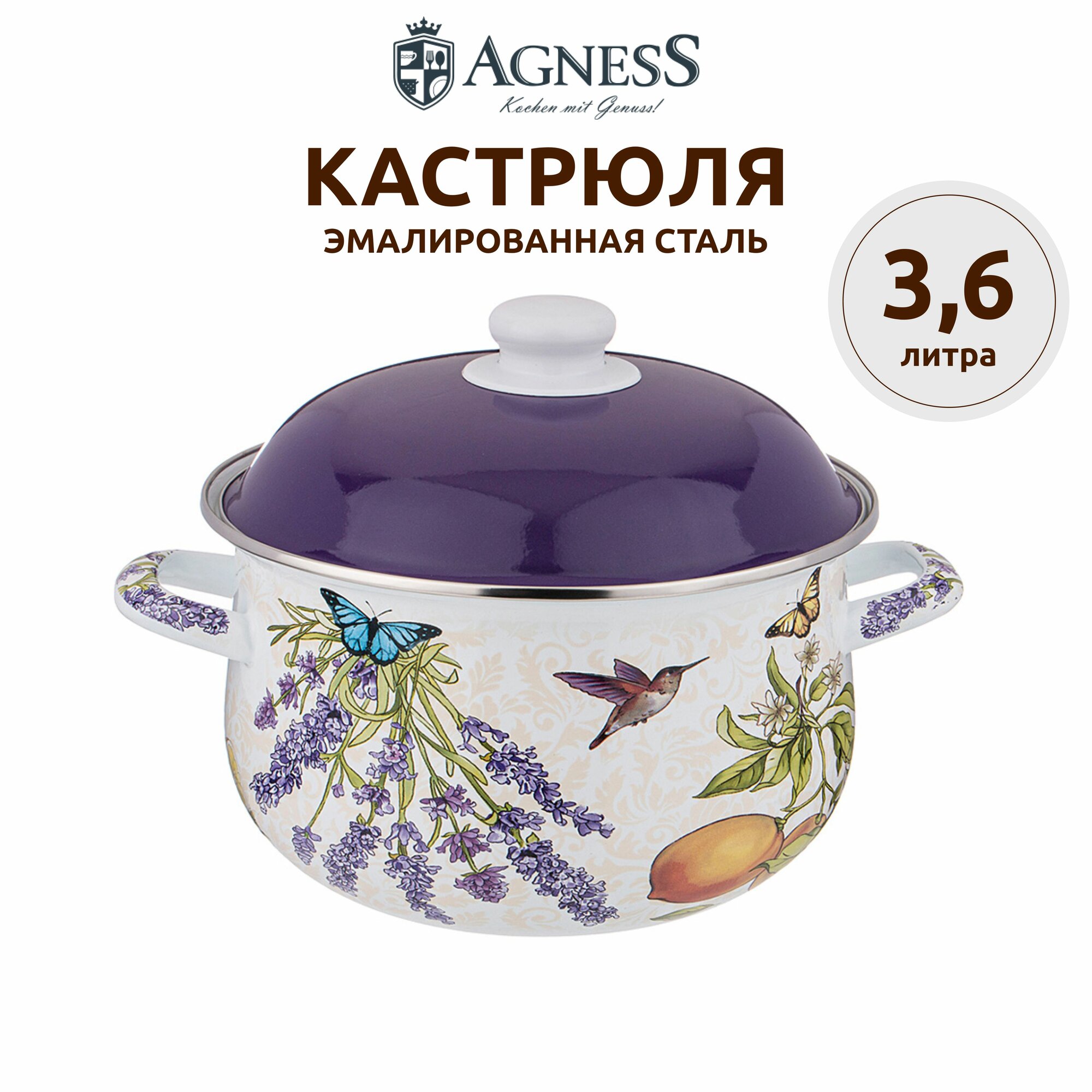 Кастрюля 934-563 agness эмалированная с крышкой серия фруктовая корзина, 3.6 л