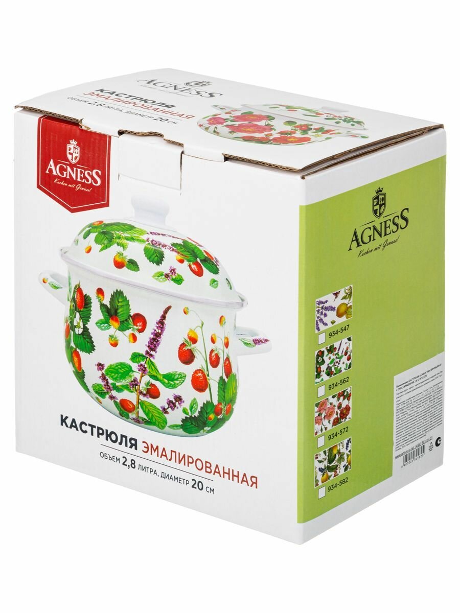 Кастрюля 934-563 agness эмалированная с крышкой серия фруктовая корзина, 3.6 л