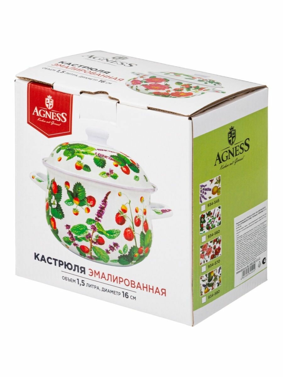 Кастрюля agness эмалированная с эмал.крышкой серия фруктовая корзина, 1.5 л, 16*10 см KSG-934-580
