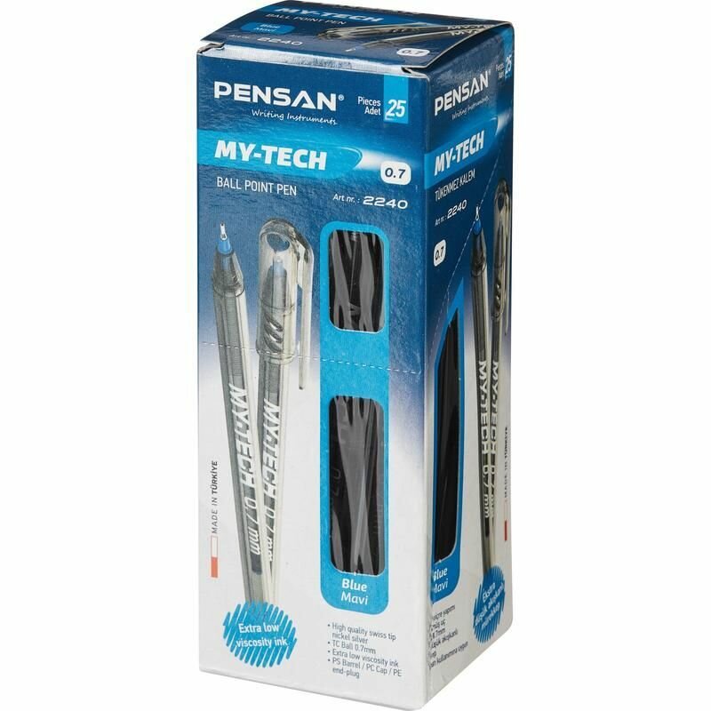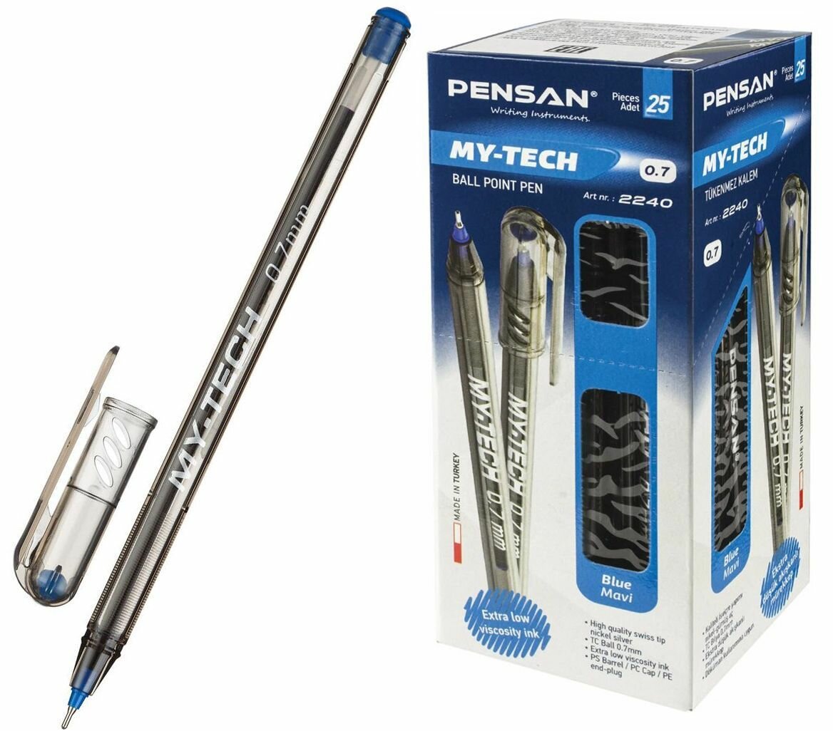 Ручка шариковая Pensan My-Tech (0.7мм, синяя, игольчатый стержень, масляная) (2240/25), 25шт.