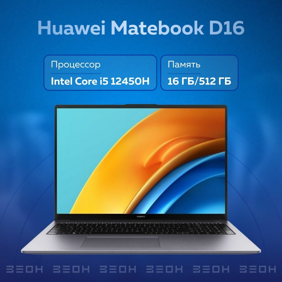 Ноутбук Huawei MateBook D 16 MCLF-X 16 (1920x1200) IPS/Intel Core i5-12450H/16ГБ DDR4/512ГБ SSD/UHD Graphics/Win 11 Home серый космос (53013WXF)