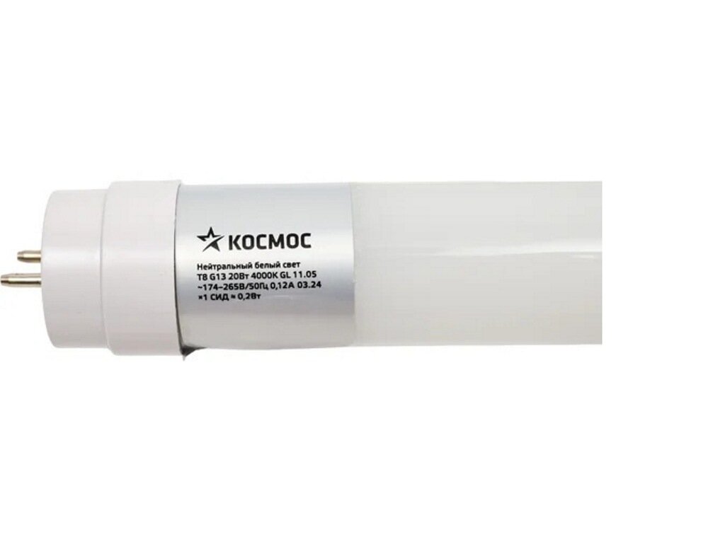 Лампа светодиодная КОСМОС 4000K, G13, T8, 20 Вт, 4000 К