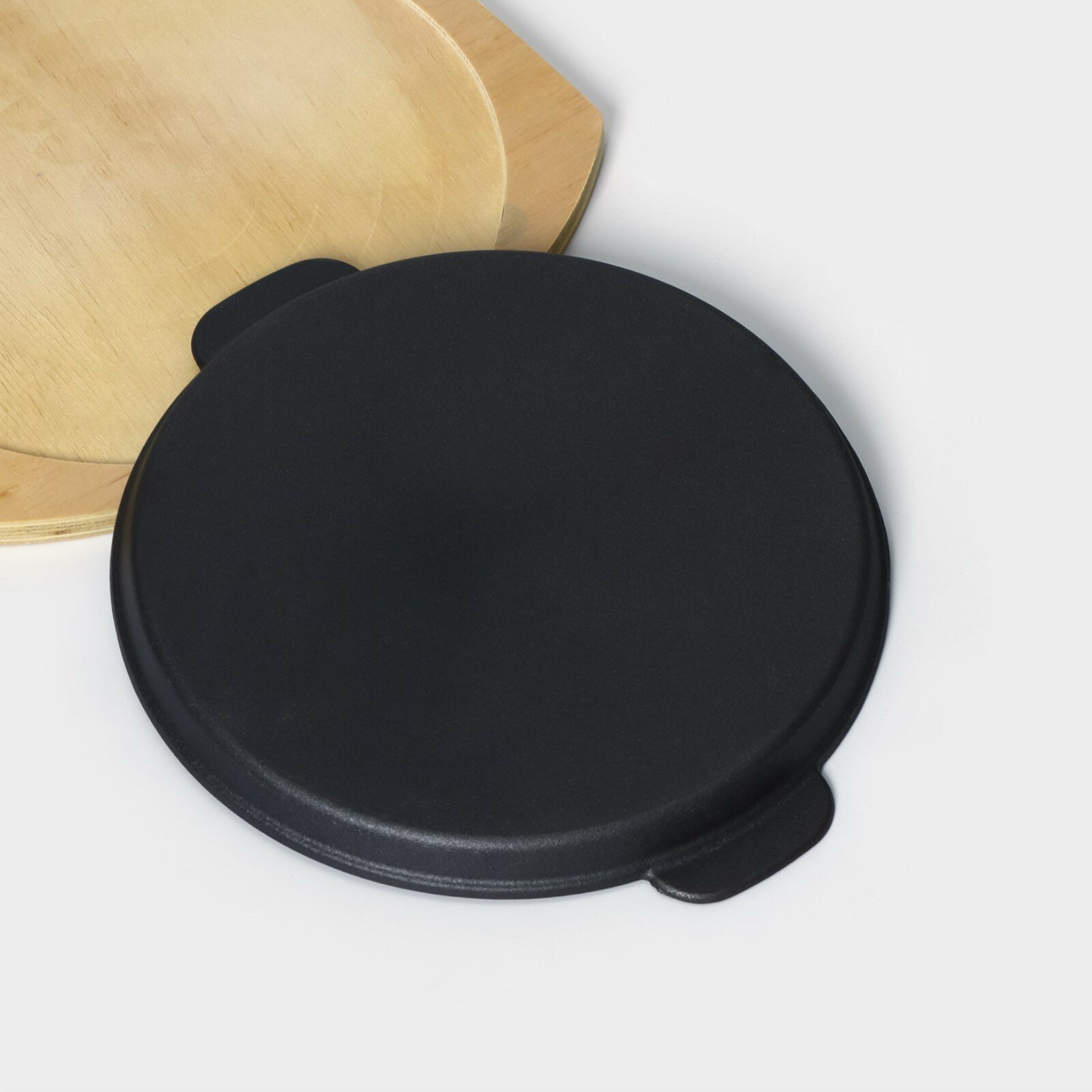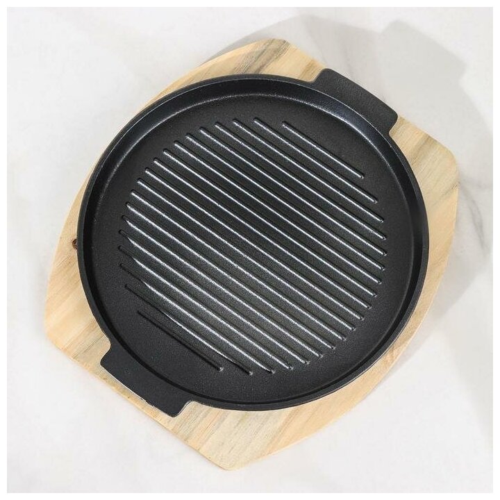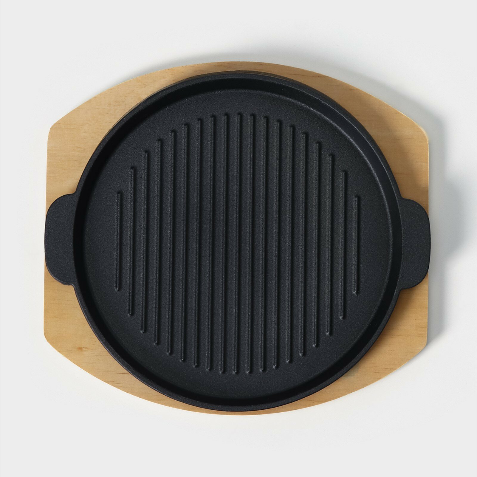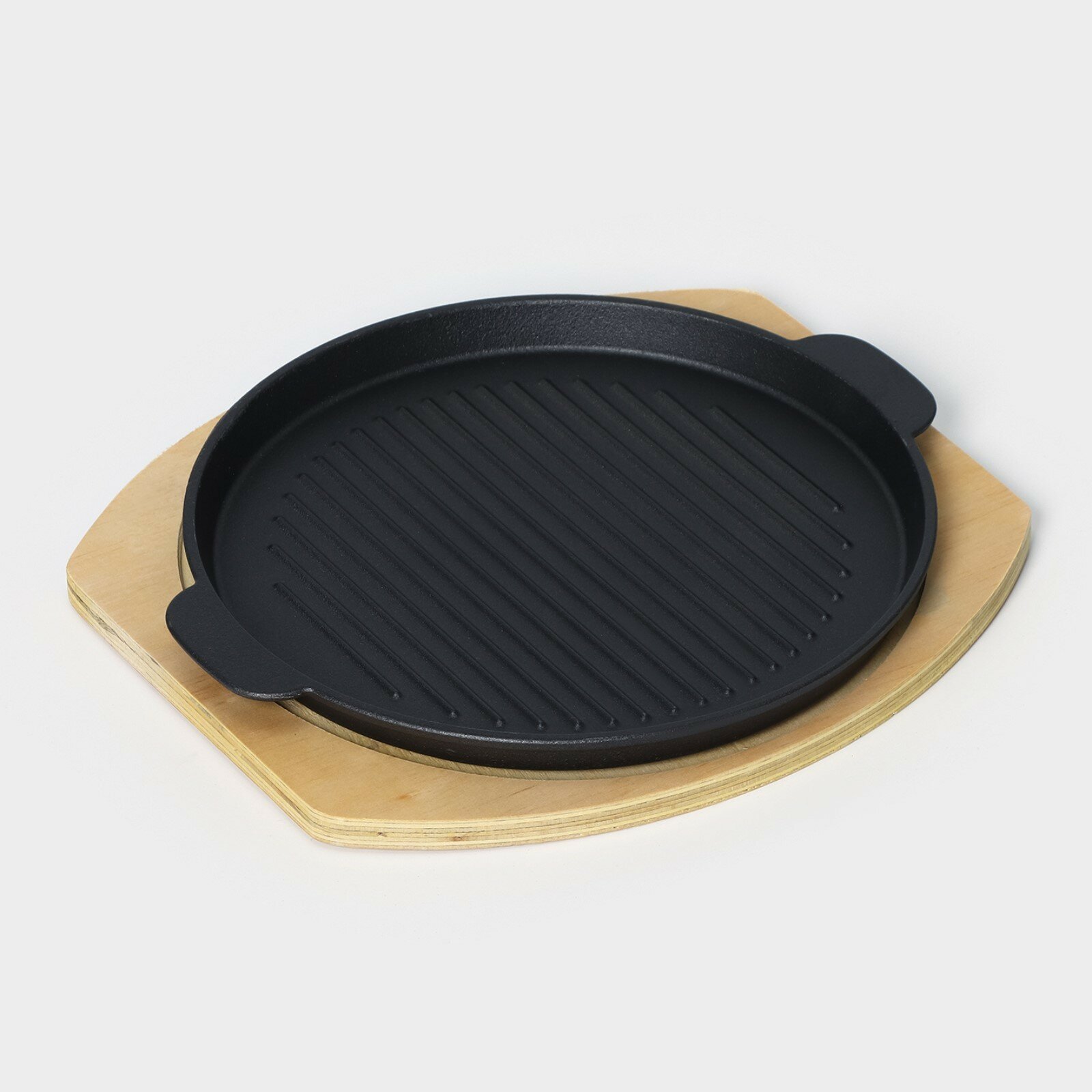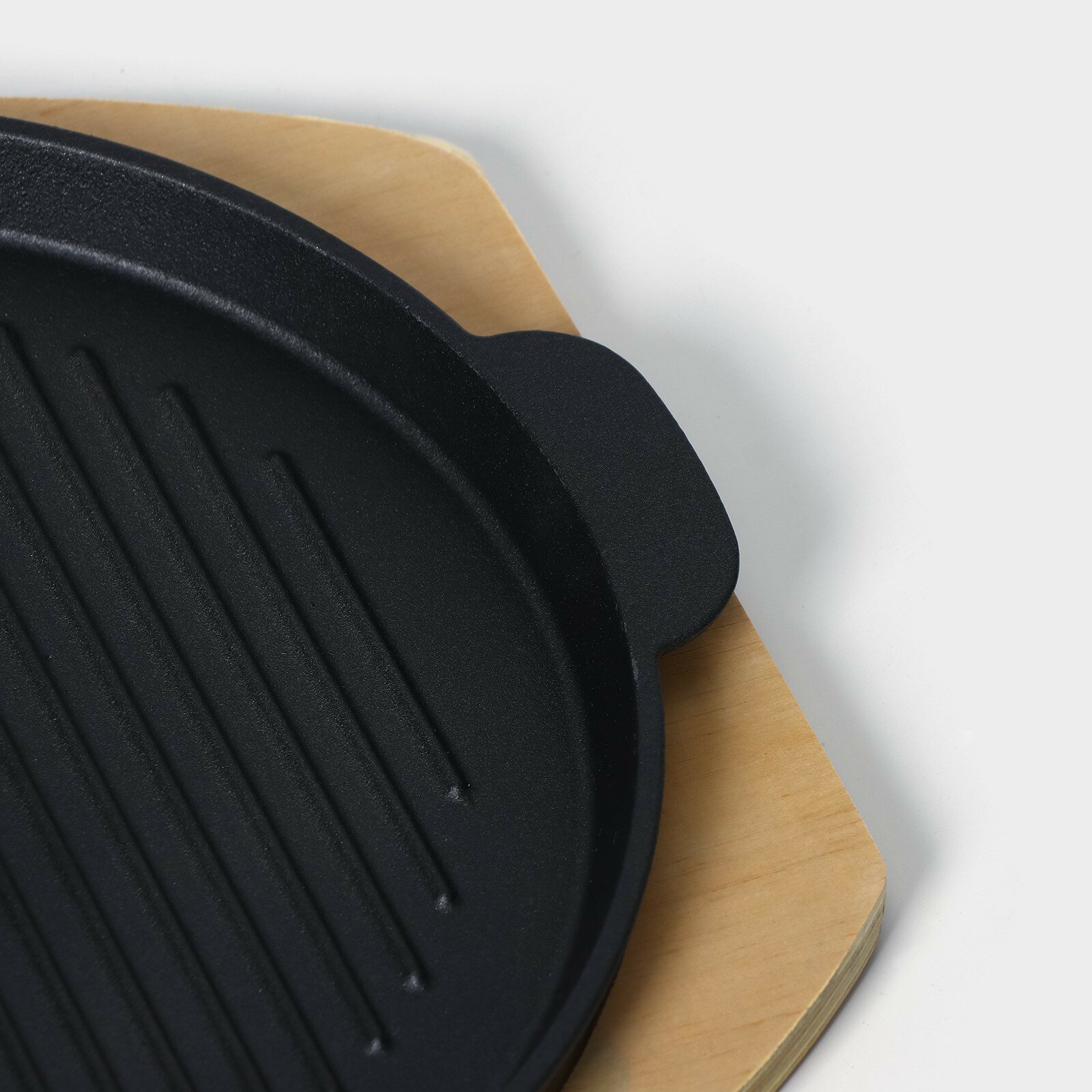 Сковорода чугунная на деревянной подставке «Круг. Гриль», 26,7×23,5 см, цвет чёрный