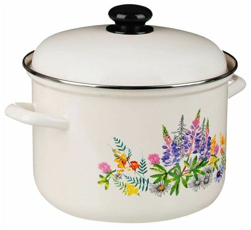 Кастрюля "Лысьвенские эмали" Люпины, эмалированная сталь 4,5 литра