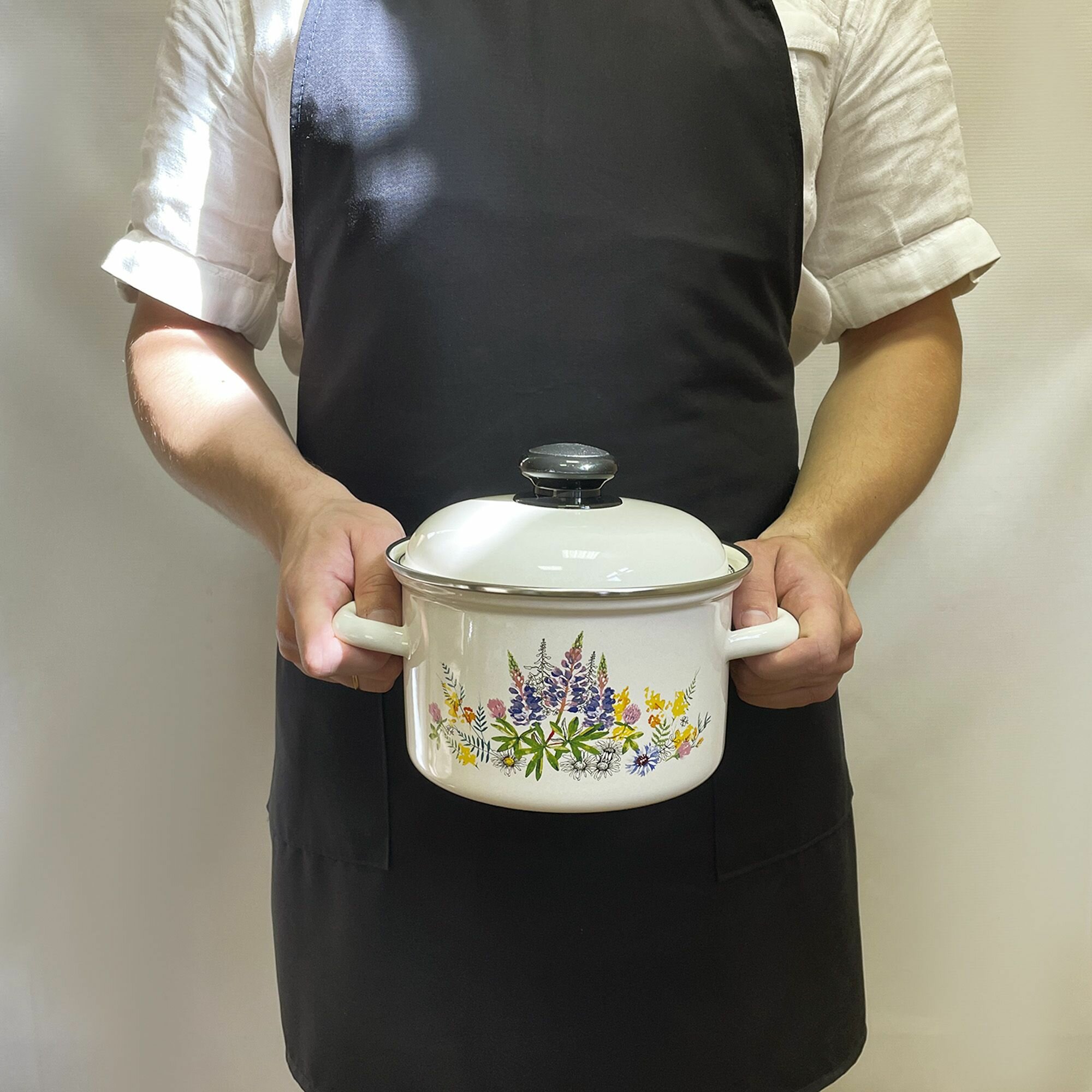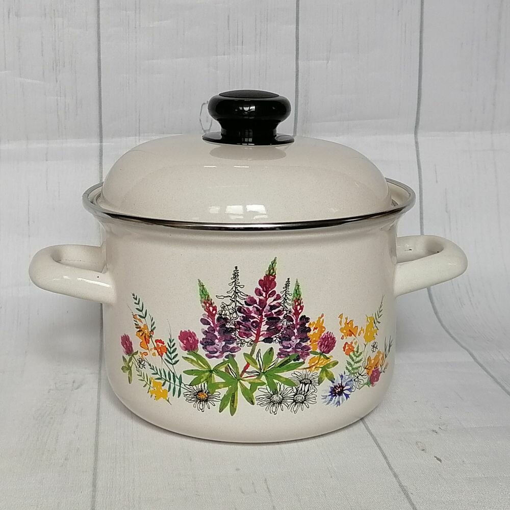 Кастрюля "Лысьвенские эмали" Люпины, эмалированная сталь 4,5 литра