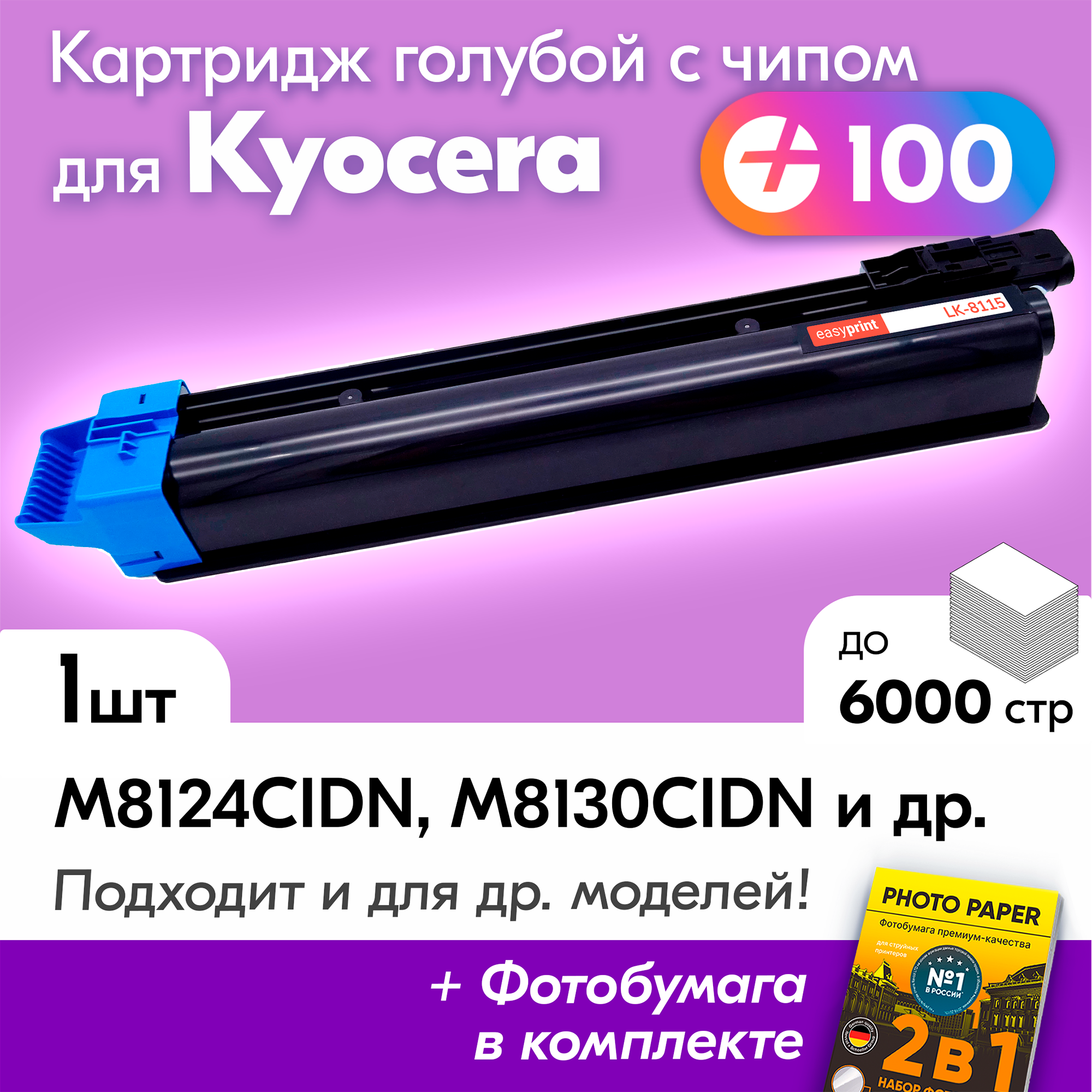 Лазерный картридж для Kyocera TK-8115C, Kyocera ECOSYS M8124CIDN, M8130CIDN с краской (тонером), Голубой, новый заправляемый, 6000 копий, с чипом интересное: