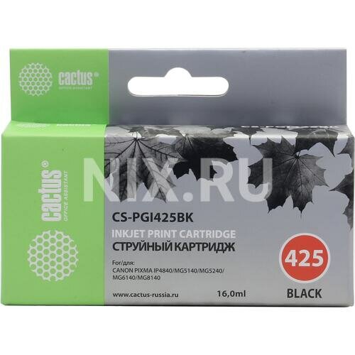 Картридж струйный Cactus CS-PGI425BK PGI-425BK черный пигментный (16мл) для Canon Pixma iP4840/MG5140/5240/6140/8140/MX884