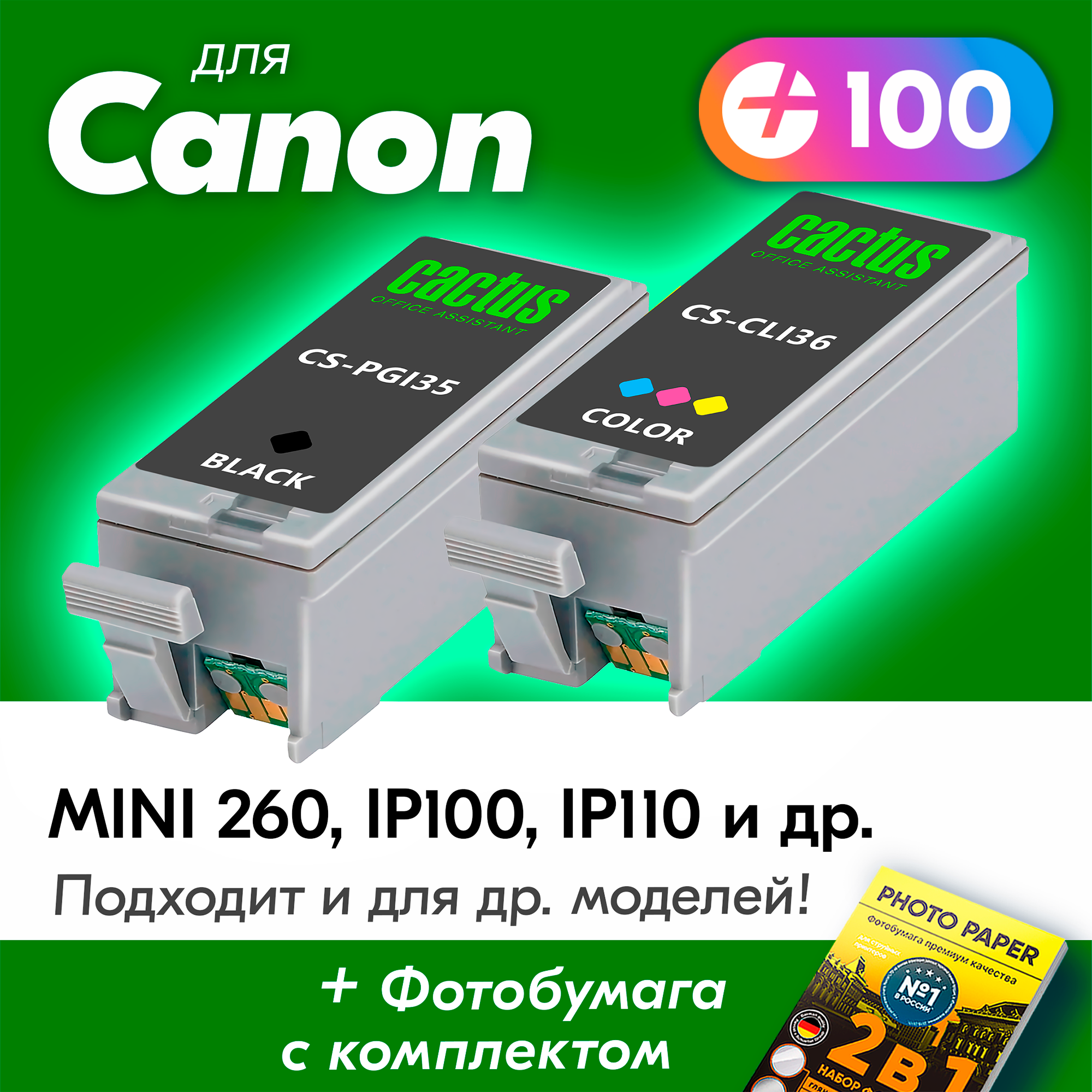 Картриджи для Сanon PGI-35, CLI-36, Canon Pixma iP100, iP100 wb, iP110, iP110 wb, TR150 и др. с чернилами (краской) черный, цветной новые заправляемые, 2 шт.