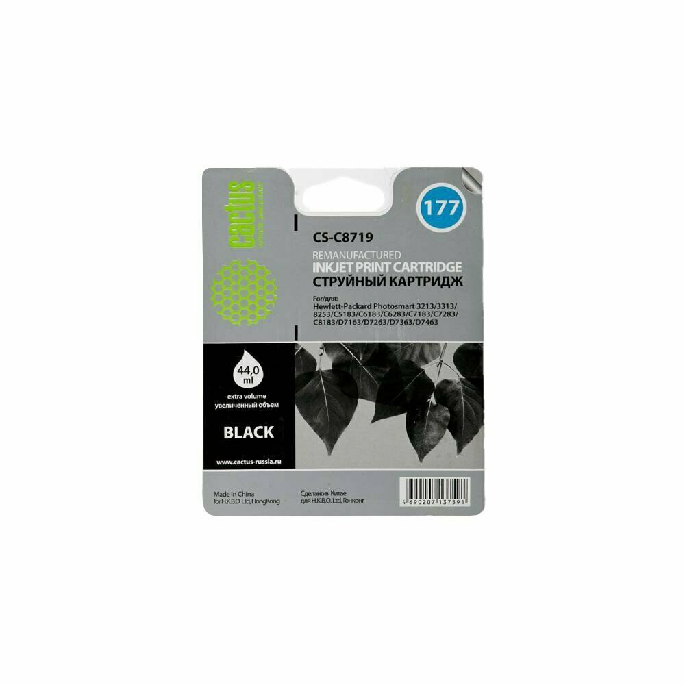 Картридж струйный Cactus CS-C8719 №177XL черный (38мл) для HP 3100/3110/3207/3210/3213/3214/3308/8250/8253/C5140