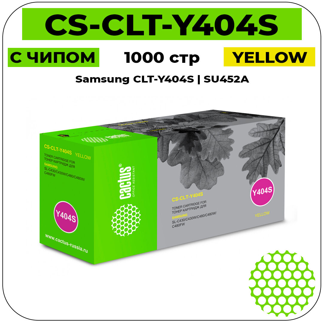 Картридж Cactus CS-CLT-Y404S, желтый, 1000 страниц, совместимый для Samsung SL-C430/C430W/C480/C480W/C480FW