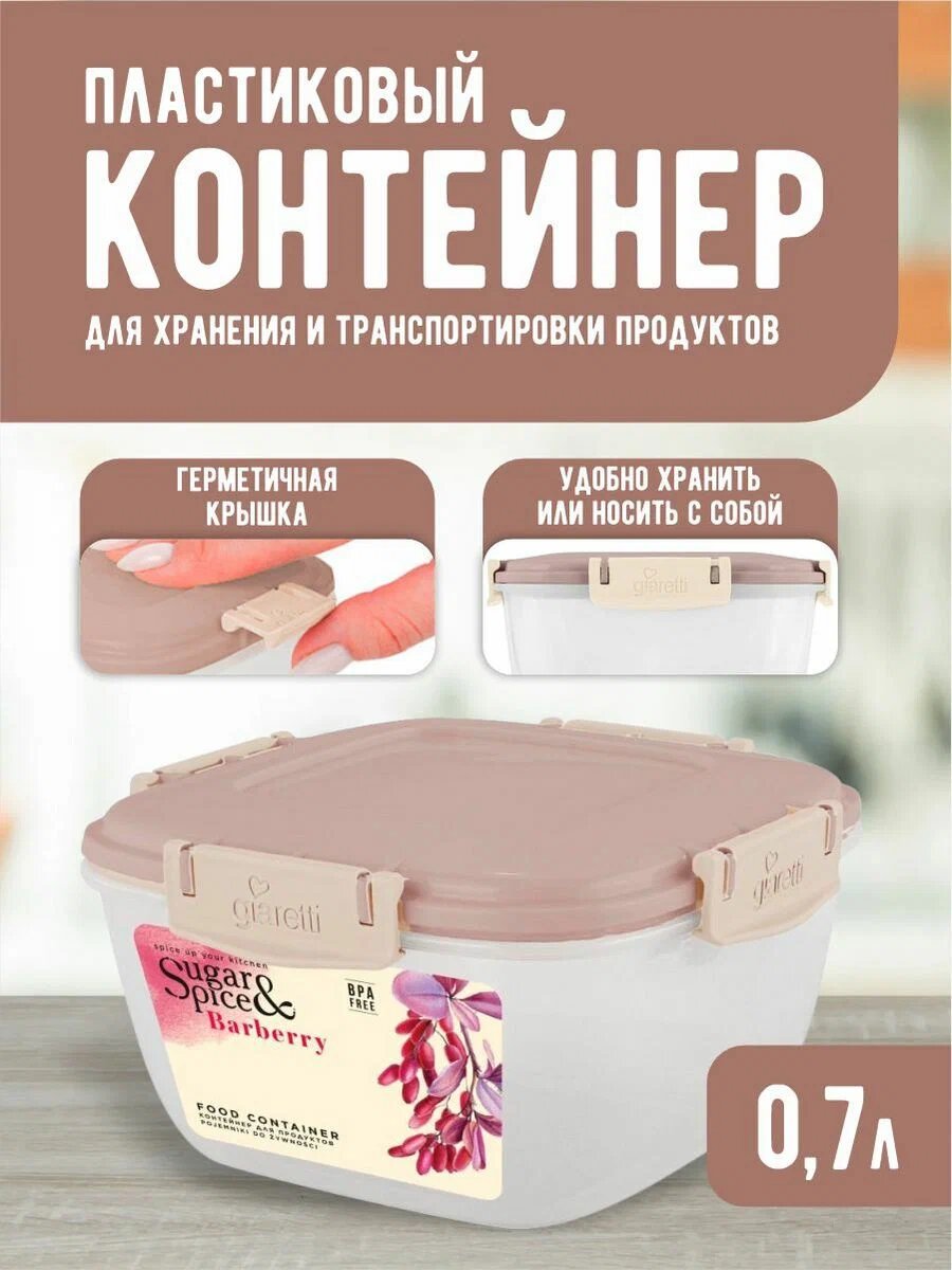 Контейнер для продуктов Sugar&Spice Barberry герметичный (брусника, квадрат), 0,7 л SE224210054