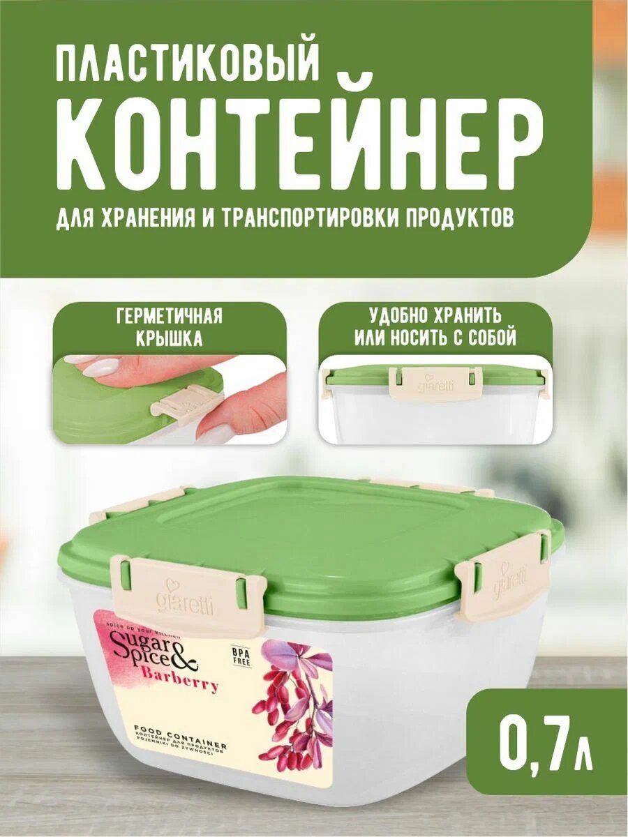 Контейнер для продуктов Sugar&Spice Barberry, 0,7л квадратный фисташка