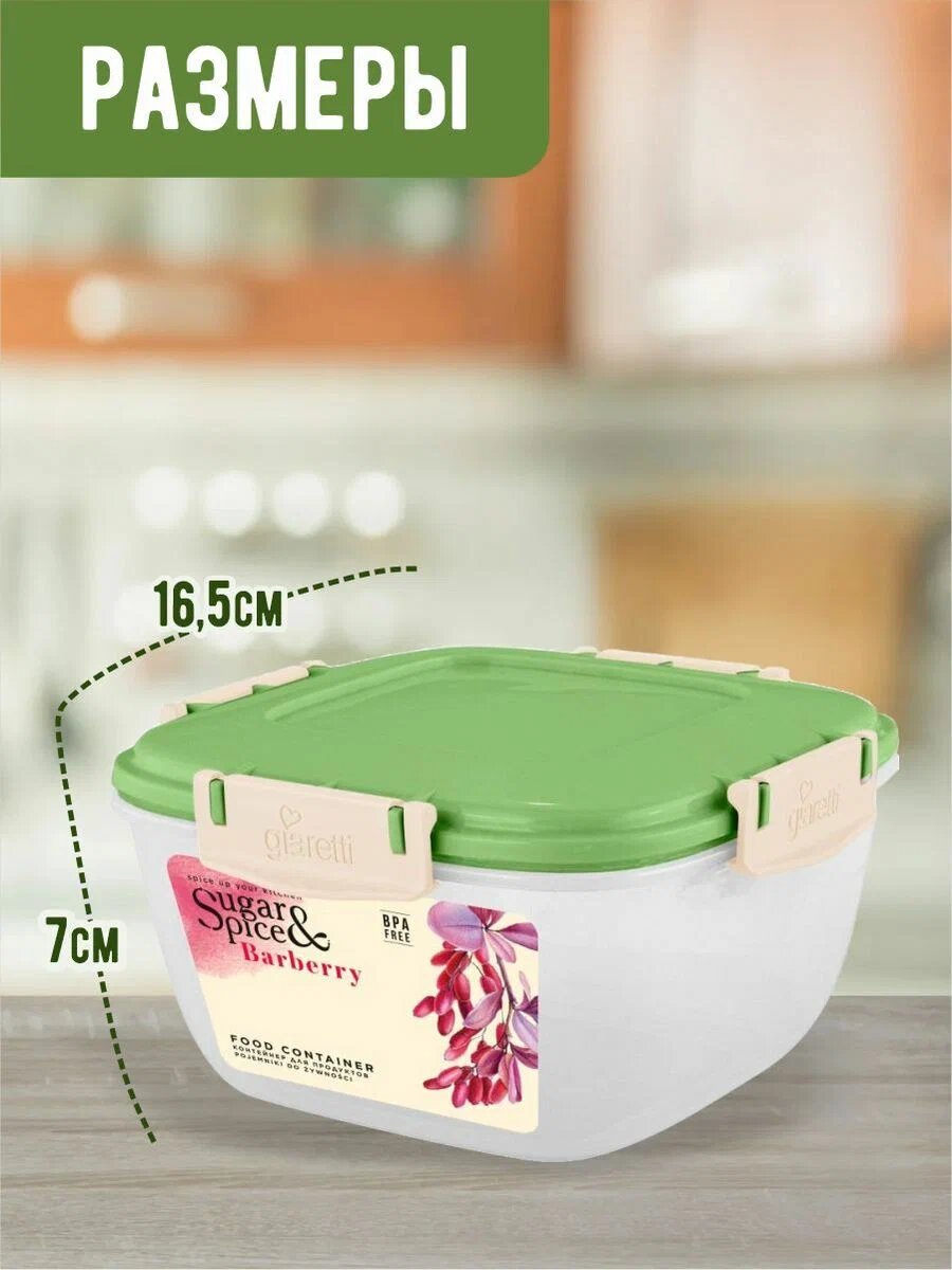 Контейнер пищевой для продуктов герметичный 1л квадратный фисташка Sugar&Spice Barberry
