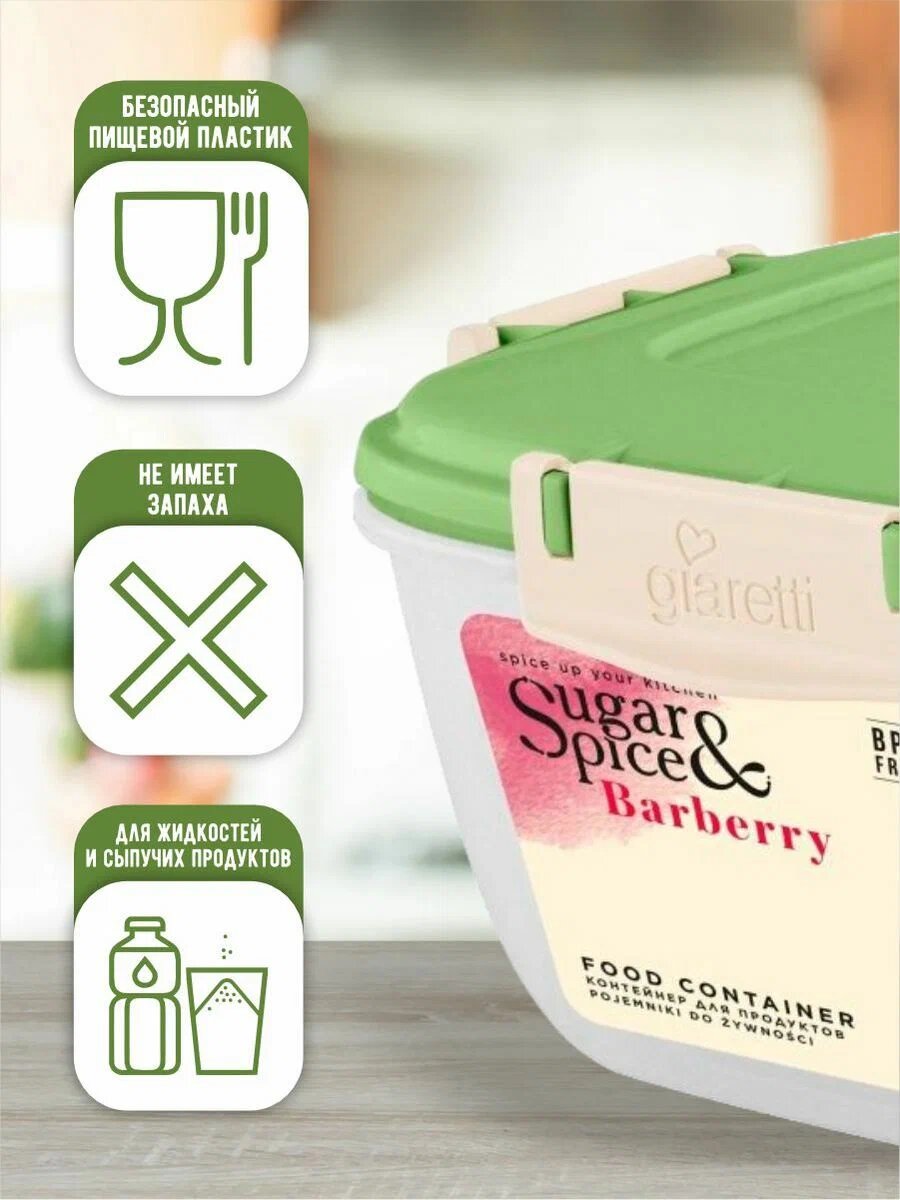 Контейнер для продуктов Sugar&Spice "Barberry", цвет Фисташка, герметичный, прямоугольный, 1,8 л (SE224710050)