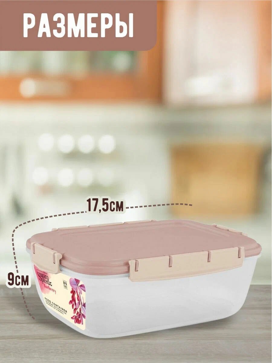 Контейнер для продуктов Пластик Репаблик "Sugar&Spice", Barberry, герметичный, 1,35 л, квадратный, цвет Латте