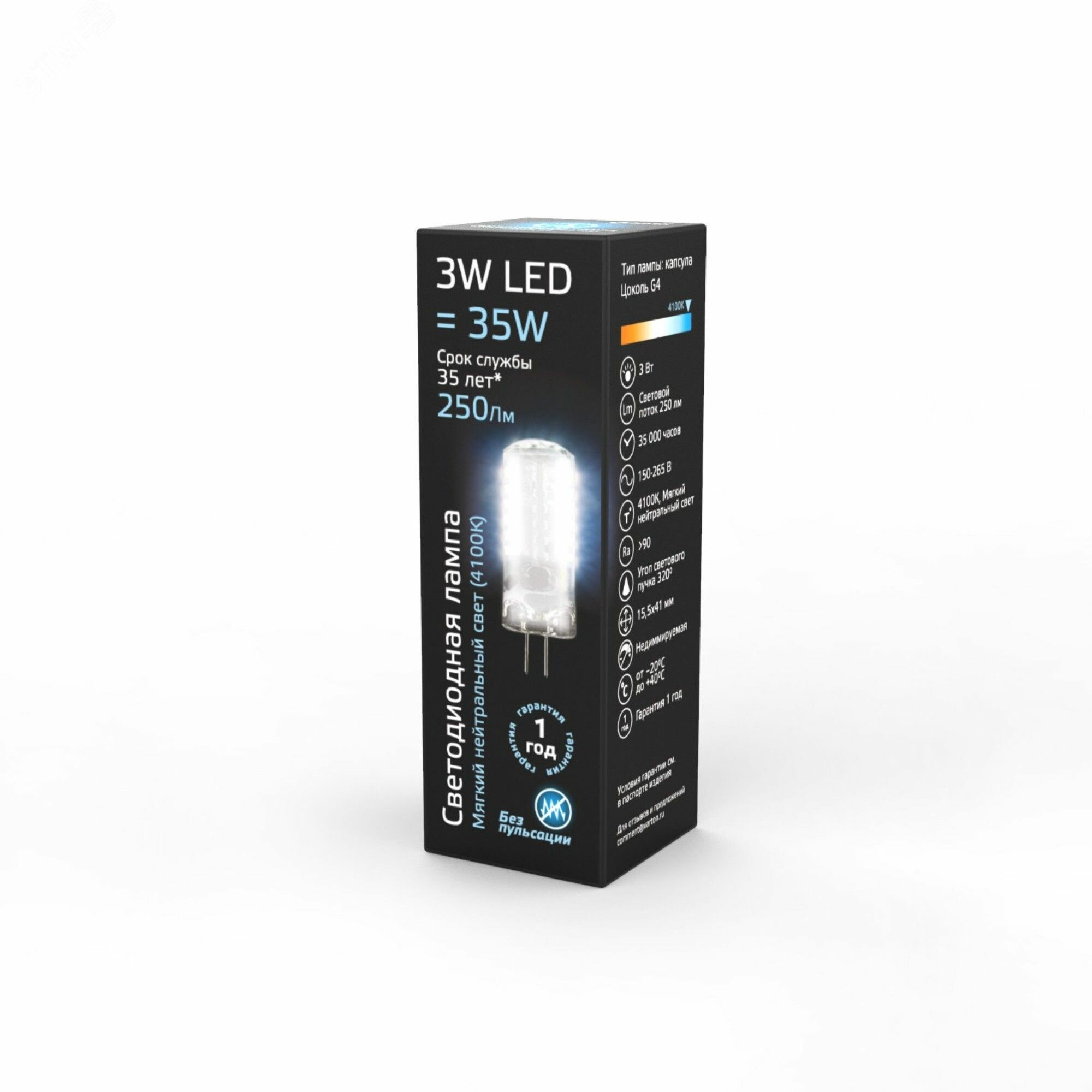 Лампа светодиодная Gauss G4 3Вт цок.:G4 капсул. 220B 4100K св.свеч.бел.нейт. (упак.:1шт) (107707203)
