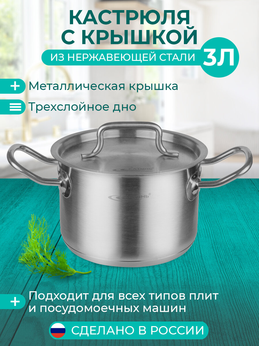 СохранитьКастрюля нержавеющая сталь, 3 л, с крышкой, крышка сталь, Катунь, Общепит, КТ-ОБ-03, металлик интересное: