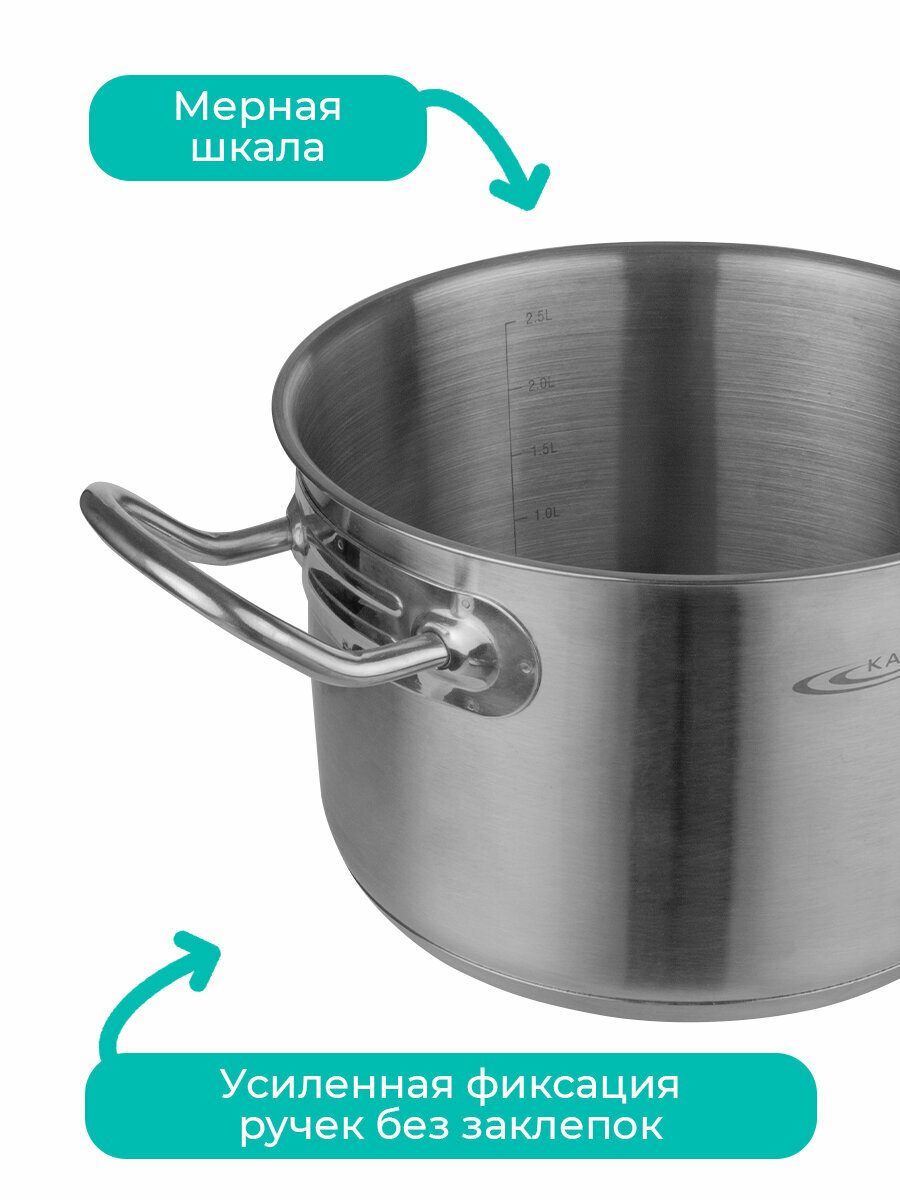 Купить Кастрюля нержавеющая сталь, 3 л, с крышкой, крышка сталь, Катунь, Общепит, КТ-ОБ-03, металлик