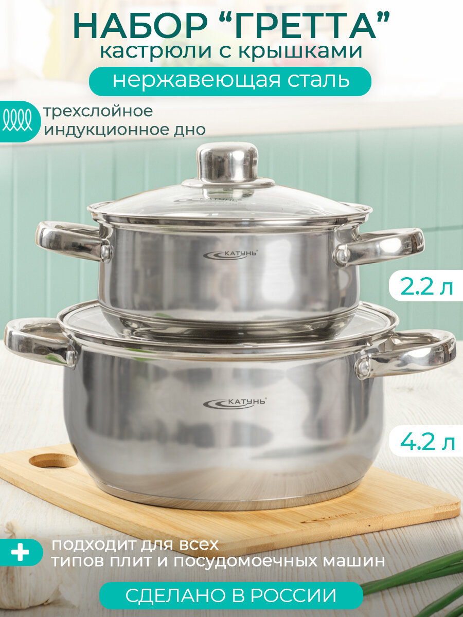 Катунь Набор кастрюль «Гретта», 2 шт: 2,2/4,2 л, капсульное дно