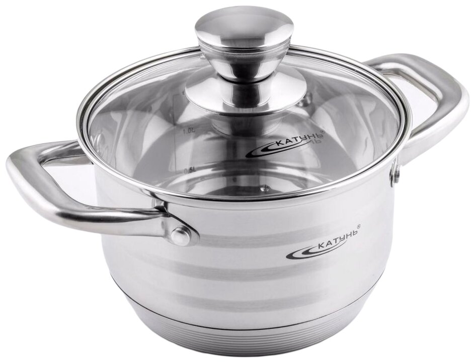 Кастрюля нержавеющая сталь, 1.8 л, с крышкой, крышка стекло, Катунь, Элис, КТ16-D-16, серебристая, индукция