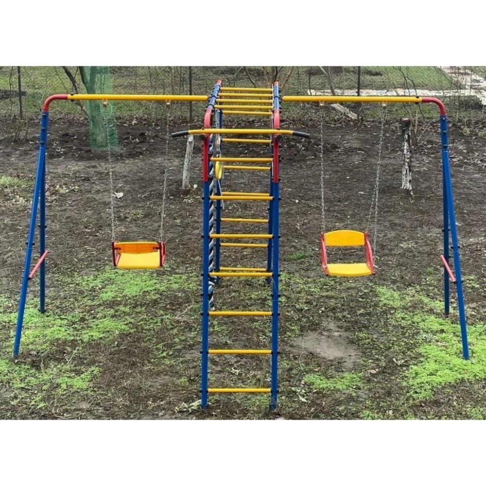 Спортивно-игровой комплекс юный атлет Уличный с 2-мя качелями, синий/красный/желтый