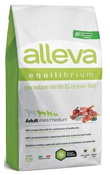 Сухой корм для собак ALLEVA EQUILIBRIUM SENSITIVE LAMB AND OCEAN FISH ADULT MINI/MEDIUM Аллева Корм для взрослых собак мелких и средних пород Эквилибриум Сенситив с ягненком и океанической рыбой 2 кг