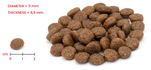 | Пищевая ценность | сырой протеин – 26,00%, сырой жир – 16,00%, сырая клетчатка – 3,00%, сырая зола – 7,20%, Кальций – 1,50%, Фосфор – 1,00%, Омега-6 – 1,75%, Омега-3 – 0,27%, глюкозамин – 400 мг/кг, хондроитин сульфат – 350 мг/кг |