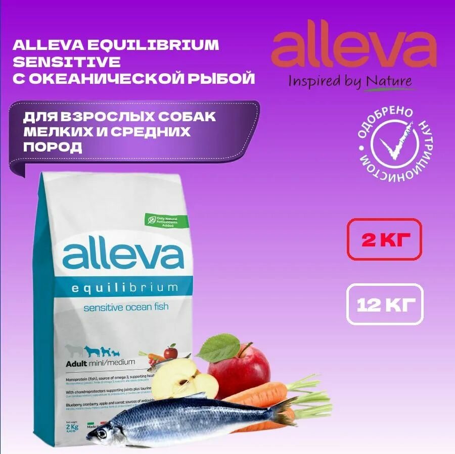 ALLEVA EQUILIBRIUM Корм для взрослых собак мелких и средних пород Сенситив с океанической рыбой 2 кг