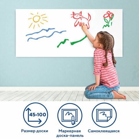 Доска-панель маркерная самоклеящаяся, белая в рулоне (45х100 см), BRAUBERG, 236470 В комплекте: 1шт.