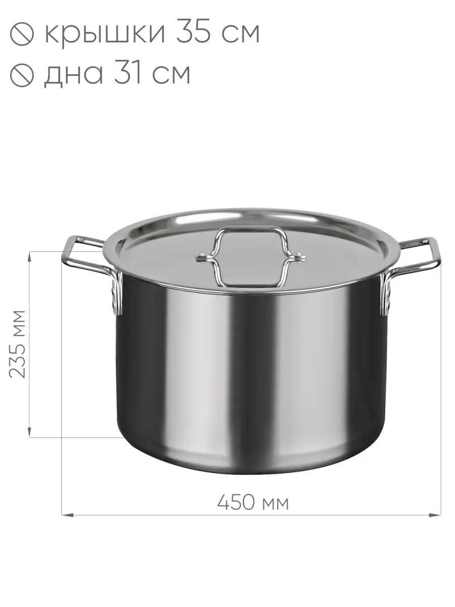 Кастрюля «Общепит», 20 л, d=35 см, h=23 см, металлическая крышка, индукция