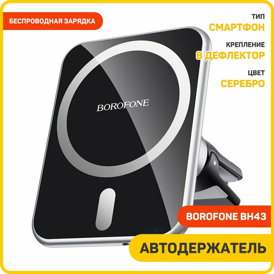 Автомобильный держатель/беспроводное зарядное устройство Borofone BH43 (магнитный / в дефлектор) серебро