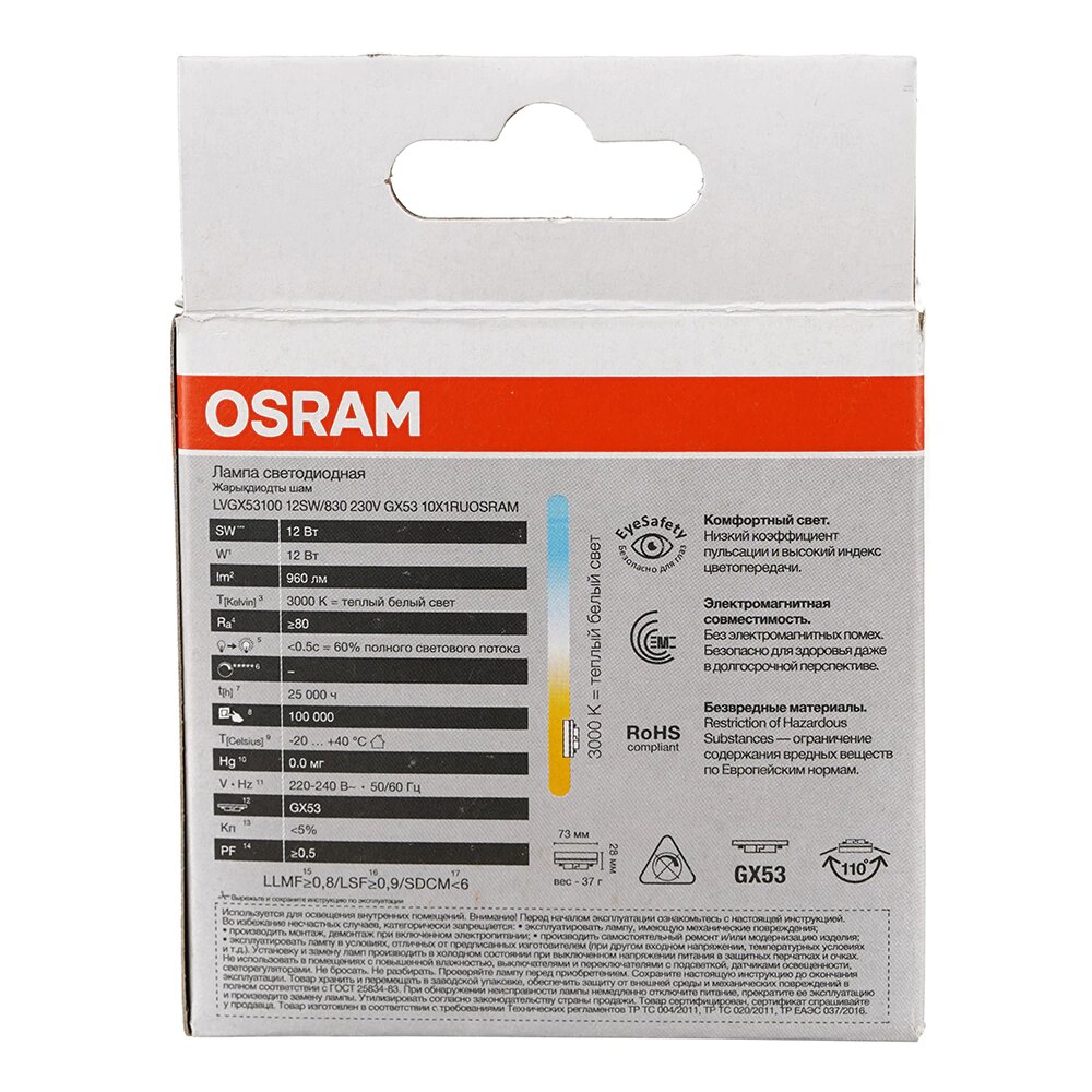 Лампа светодиодная LED Value LVGX53100 12SW/840 230В GX53 10х1 RU, OSRAM 4058075582187 (1 шт.)