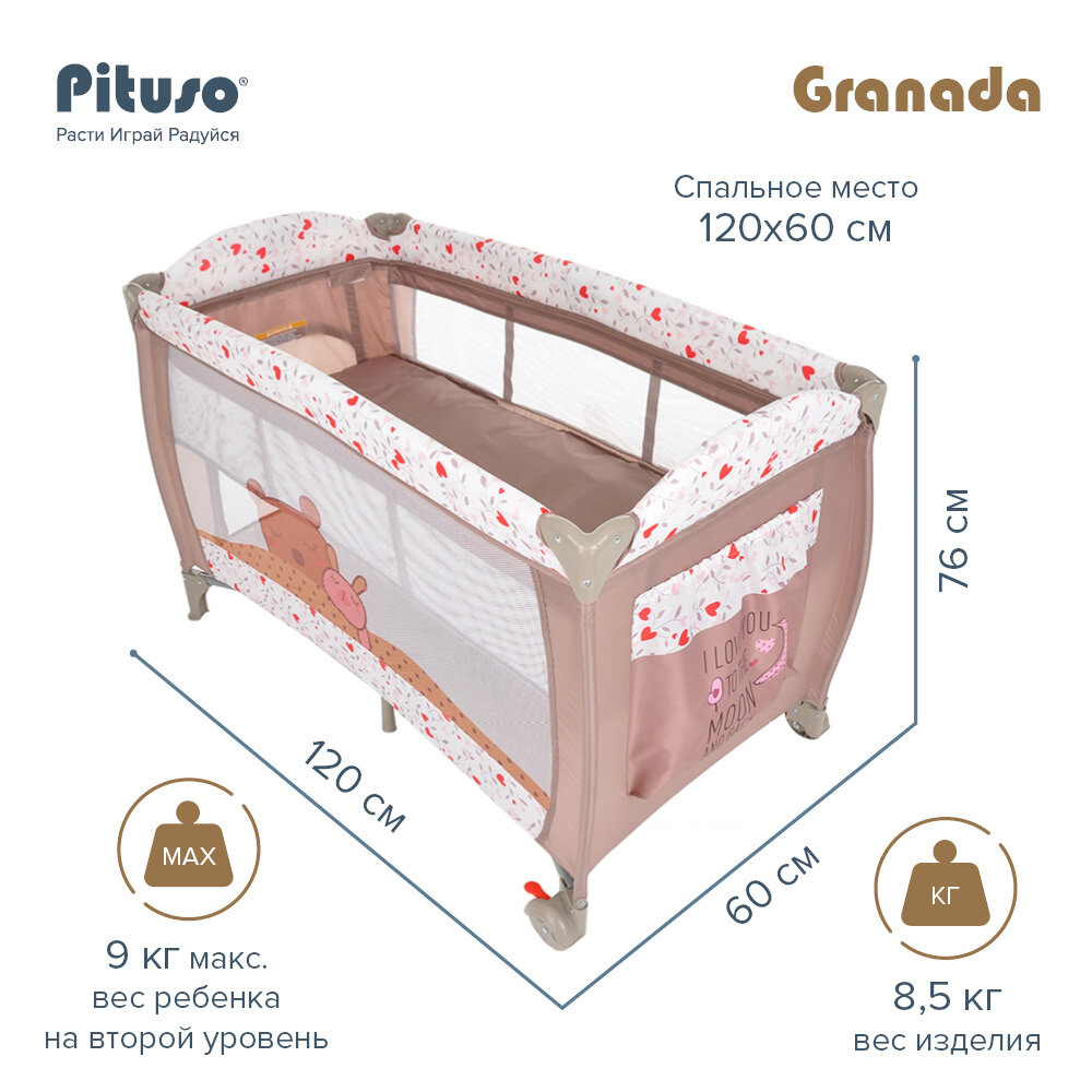 Купить Манеж-кроватка для новорожденного Pituso Granada, складной, мобильный, с 0 до 3- х лет, 125х72х83 см, Дружба
