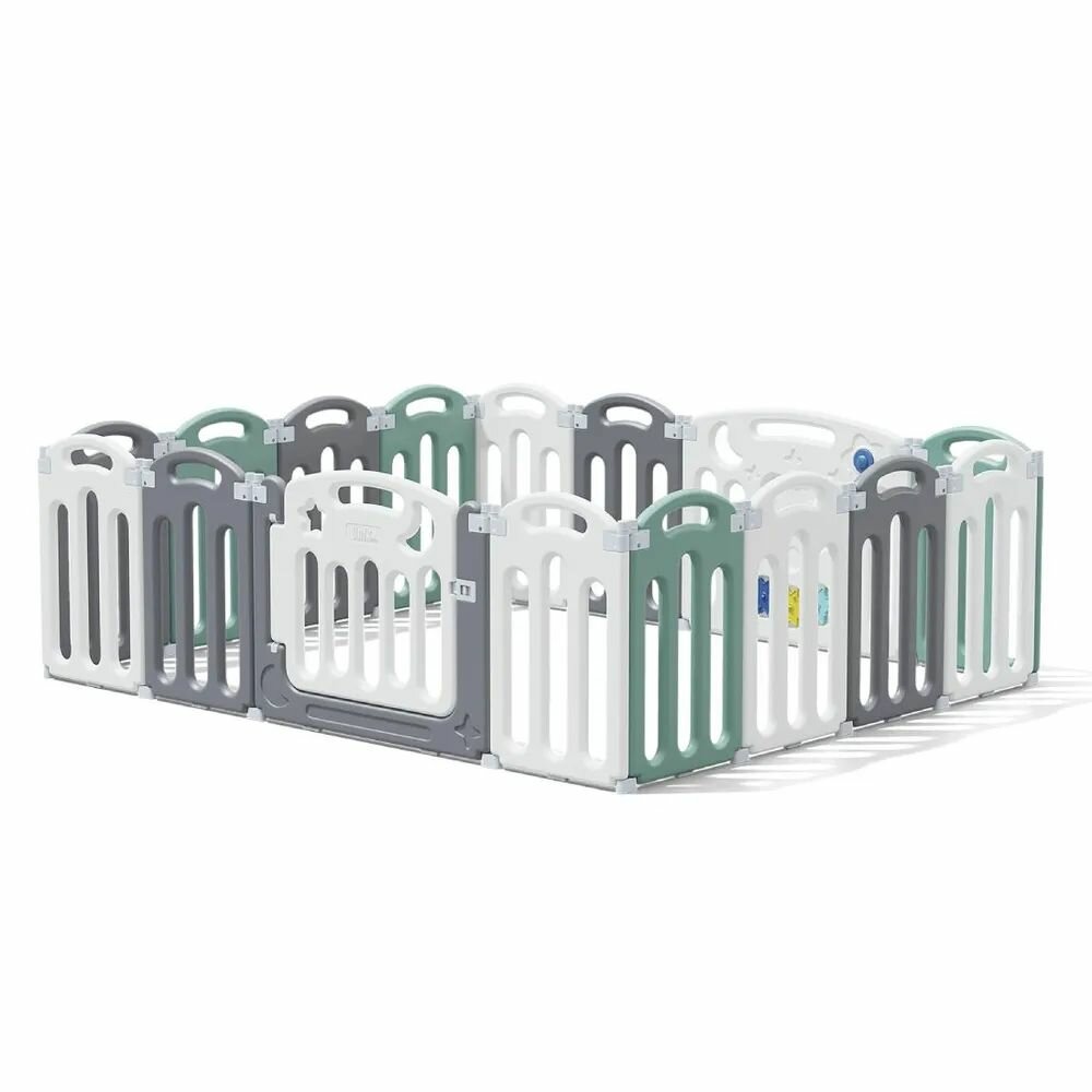 Манеж UNIX Kids "Simple" Color,серый/белый/зеленый, 188x188 см, комплекс для дома, для улицы, вольер для собак, щенков