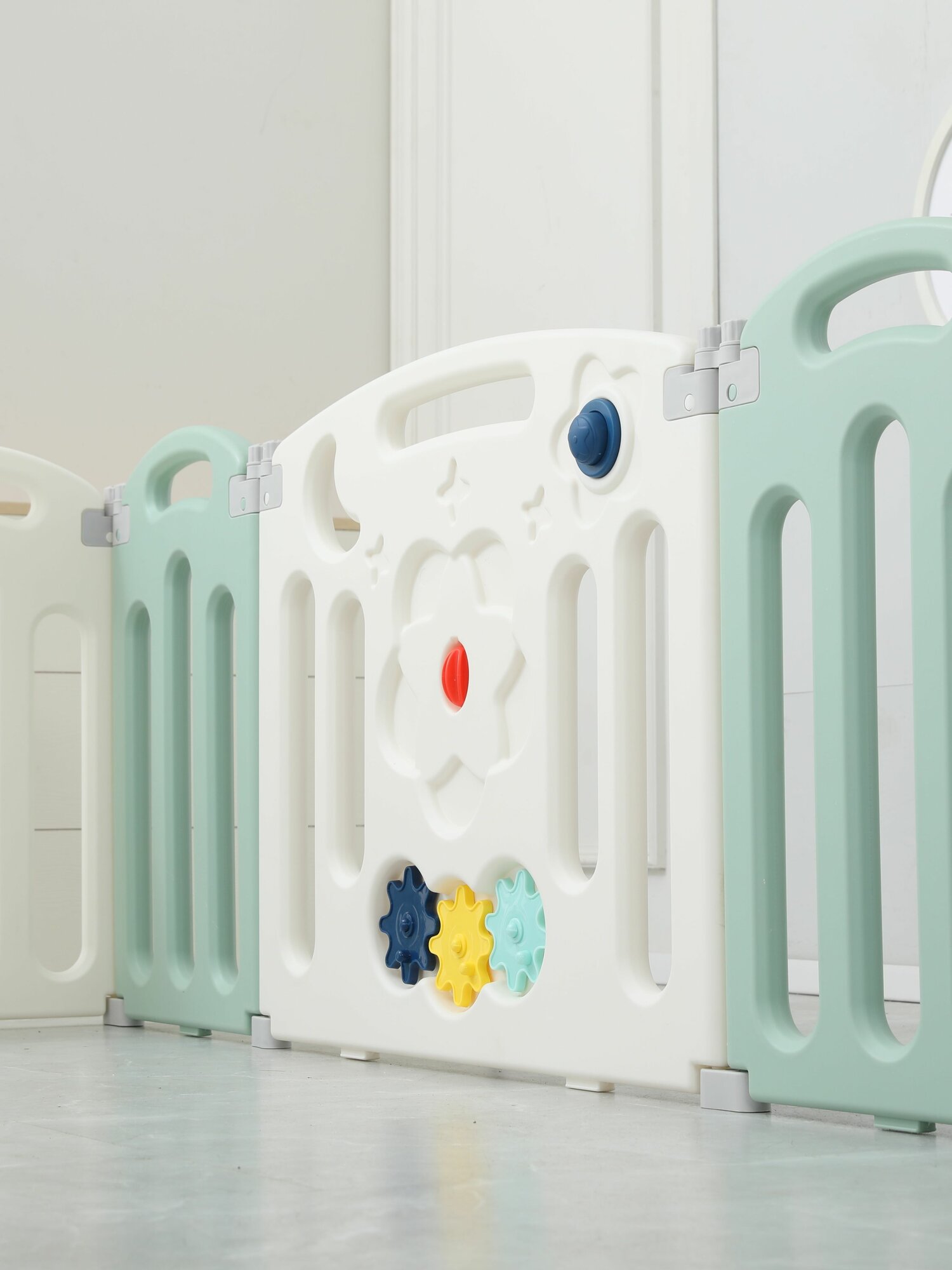 Манеж UNIX Kids Simple, для дома и улицы, бизиборд, от 0 месяцев, складной, белый/серый/зеленый, 151x151 см
