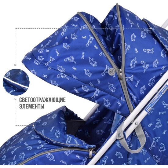 Cанки-коляска Ника Наши Детки складные, с регулируемой спинкой, Принт Динозаврики